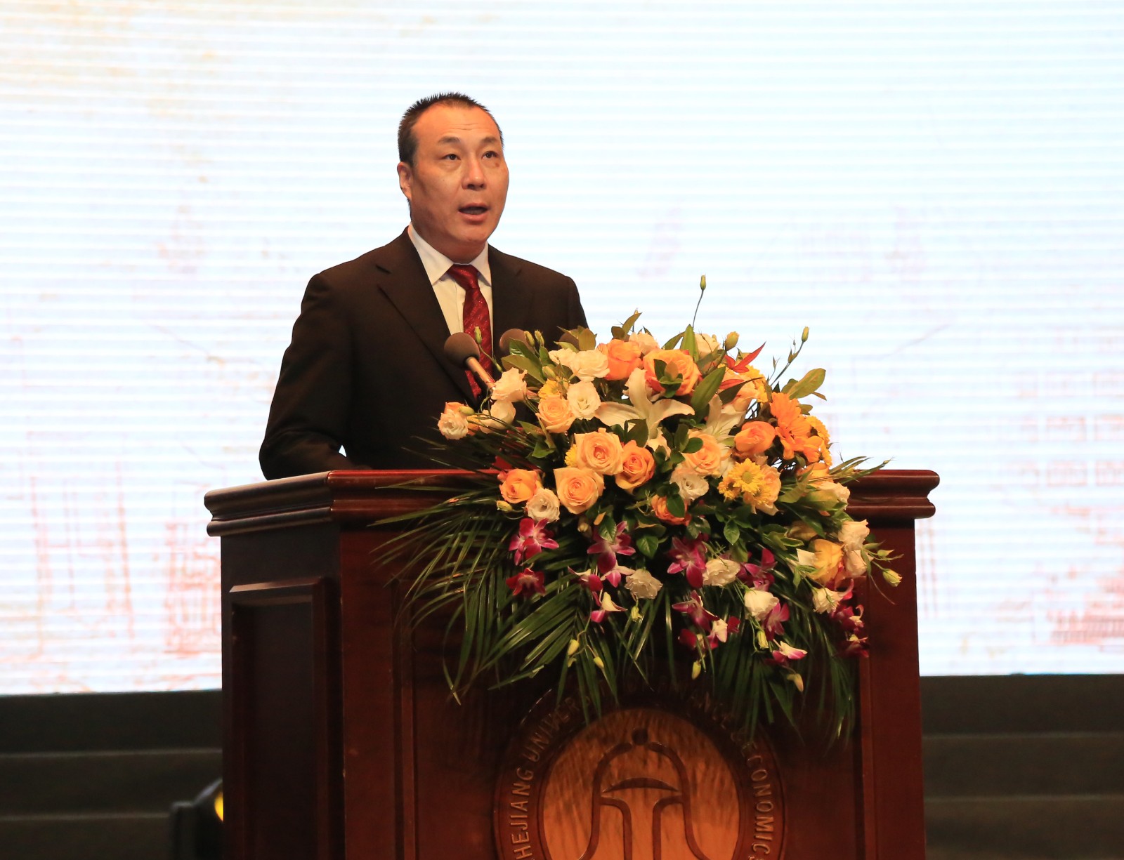 下沙校区举行。浙江盈阳资产管理股份有限公司创始人楼栋校友、管理层孔繁岗校友,李金昌书记、钟晓敏校长等全体党政领导班子成员,校友总会副秘书长、相关职能部门负责人,校友和师生代表参加了仪式。
