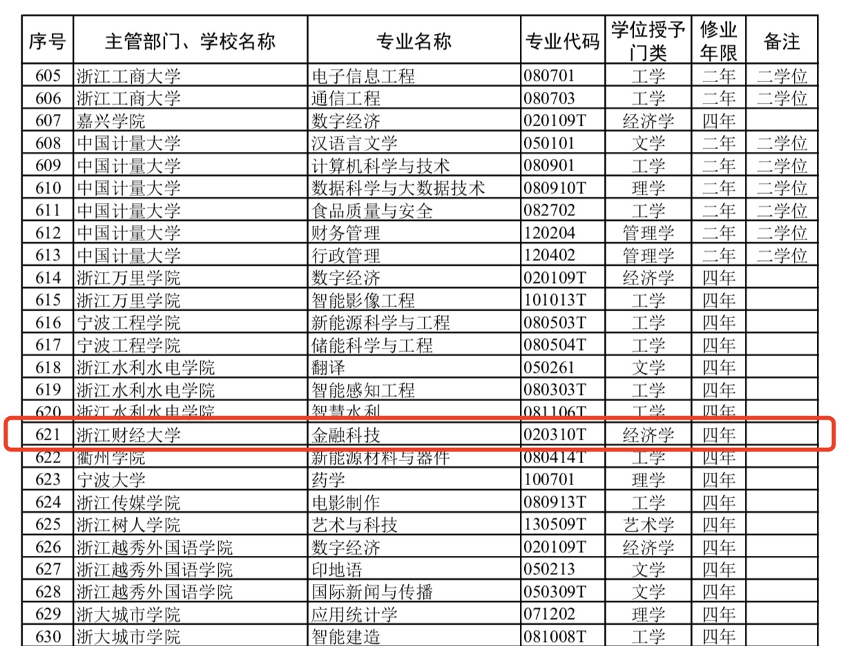 日前,教育部公布了2022年度普通高等学校本科专业备案和审批结果。金融科技是浙江财经大学此次唯一获批增设的本科专业,最快会面向2023级招生。