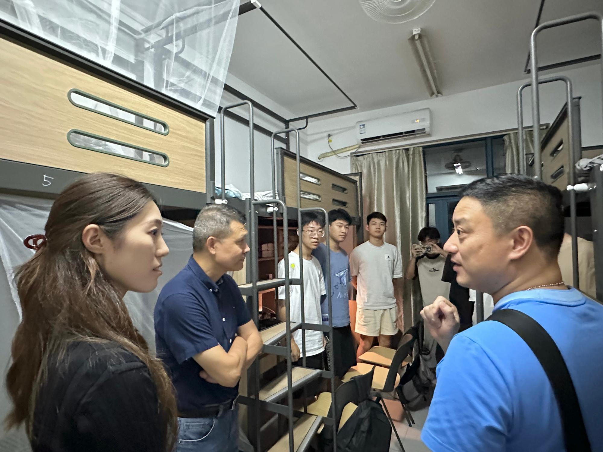 报到当晚,360足球即时比分 院长张文宇,副院长孔繁岗,三位新生班主任,辅导员以及行政老师走访了每一位新生的寝室并进行了亲切交流。