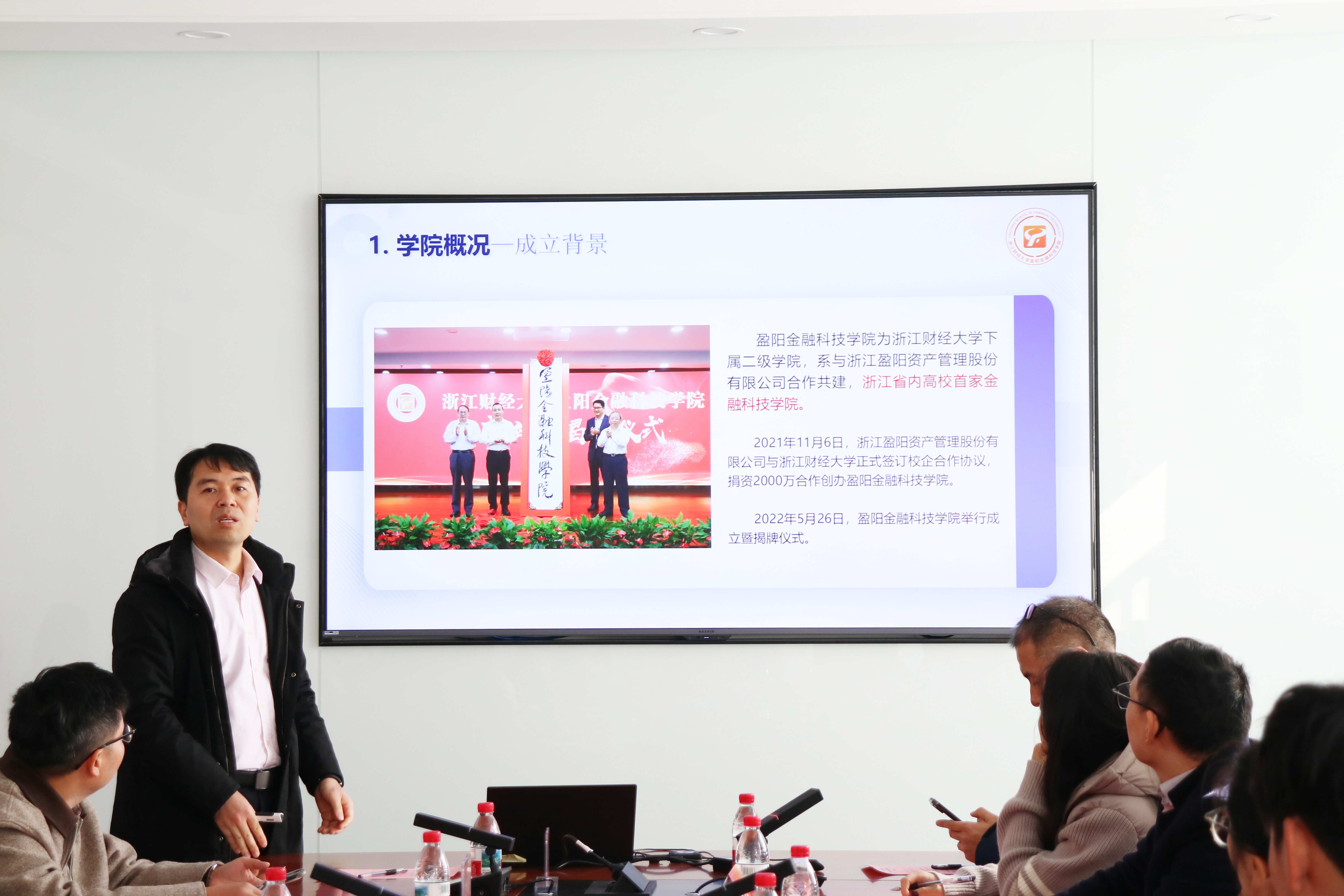 傅俊辉首先代表学院对浙江工商大学泰隆金融学院与重庆财经学院金融学院一行的来访表示热烈欢迎,并对学院建设发展概况进行了详细介绍。他表示,作为浙江省内首家金融科技学院,学院整合了多个院所的师资优势,具有完整的本硕博多层次人才培养体系,重点布局金融工程、金融科技两大核心专业。他指出,学院以“K+MAQ型”理念,构建学科交叉培养方案与师资队伍,推行产教融合教学体系,强化实践教学,推进人才培养。