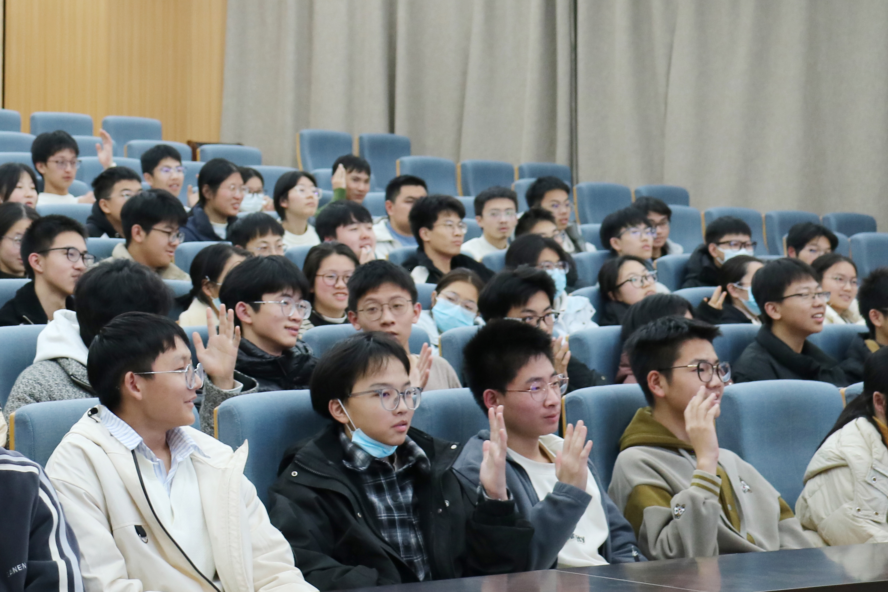 同时他还介绍了自己培养研究生的实践成果,其课题组近5年毕业的28名研究生中,24人考入985/211及海外名校读博,85%的名校升博率让学子们深受鼓舞,并以“吃的是数字科技的佳肴,喝的是人性光辉的琼浆,玩的是人机融合智能,乐的是成为更好的自己并创造更好的世界!”的“吃喝玩乐”箴言,为学子们指明了跨学科学习的进阶方向。