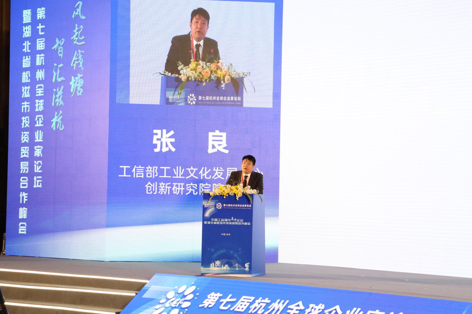 由工信部工业文化发展中心创新研究院院长张良发表了以城市产业创新升级模式为主题的演讲。