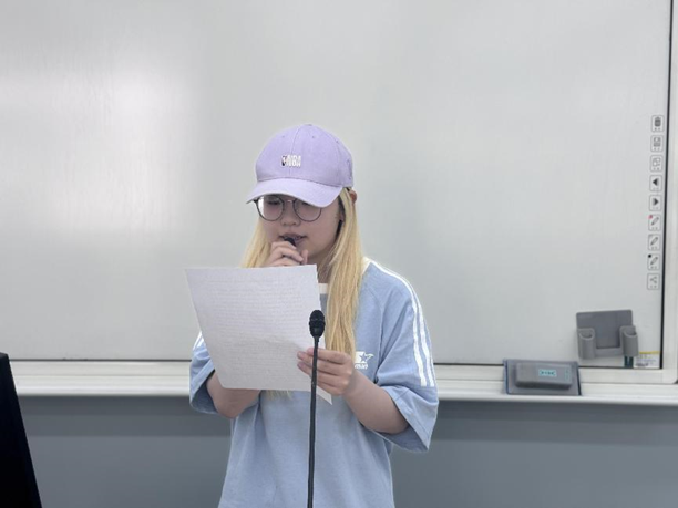 23金融数学(金融科创)班冯帅茗同学讲述了亲历外公离去的个人感受与自我成长,让在场听众感受到,要珍惜与亲人相处的时光,学会用言语和行动去传递爱与关怀。
