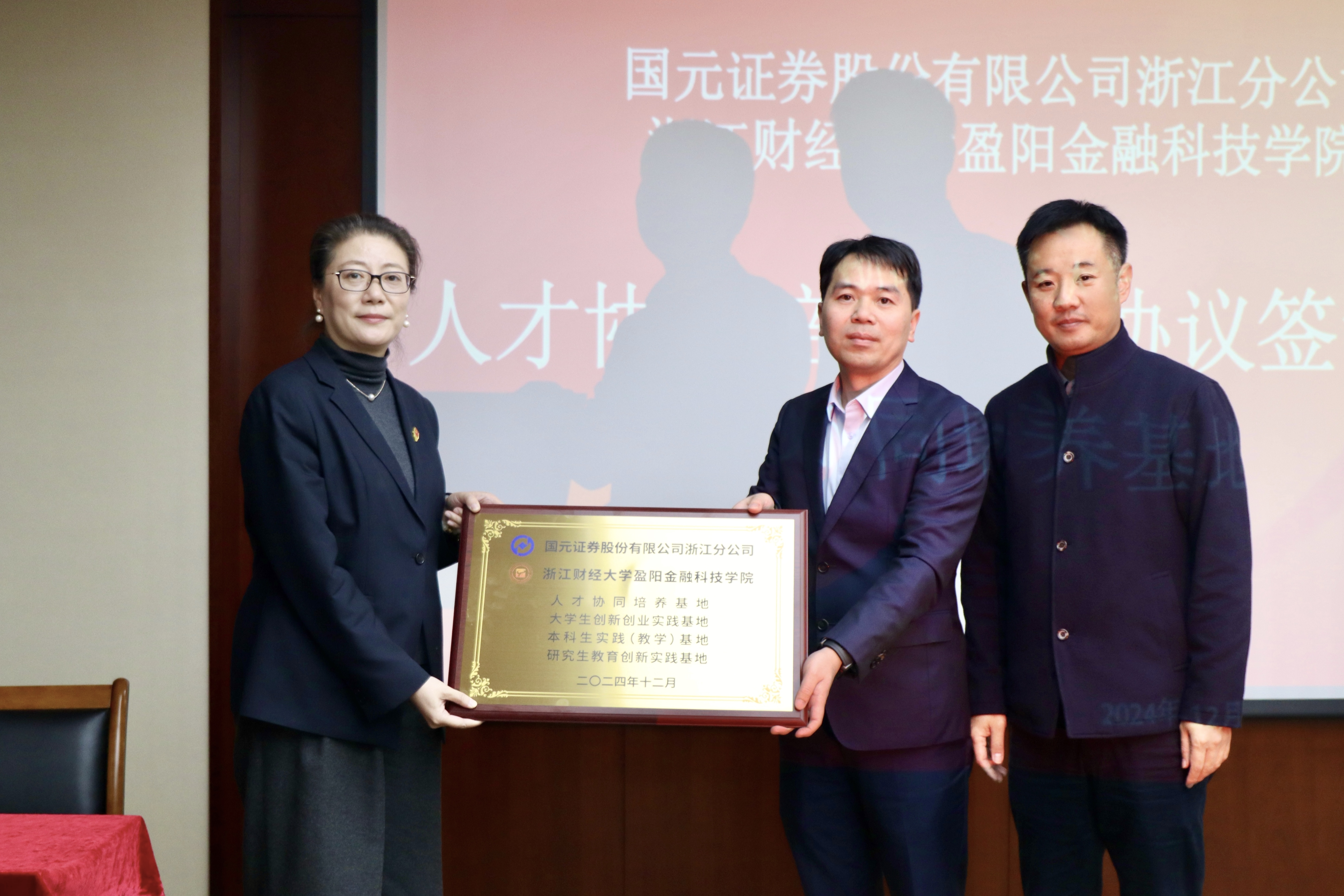 2024年12月,国元证券股份有限公司浙江分公司与盈阳金融科技学院签订人才协同培养战略合作协议书。