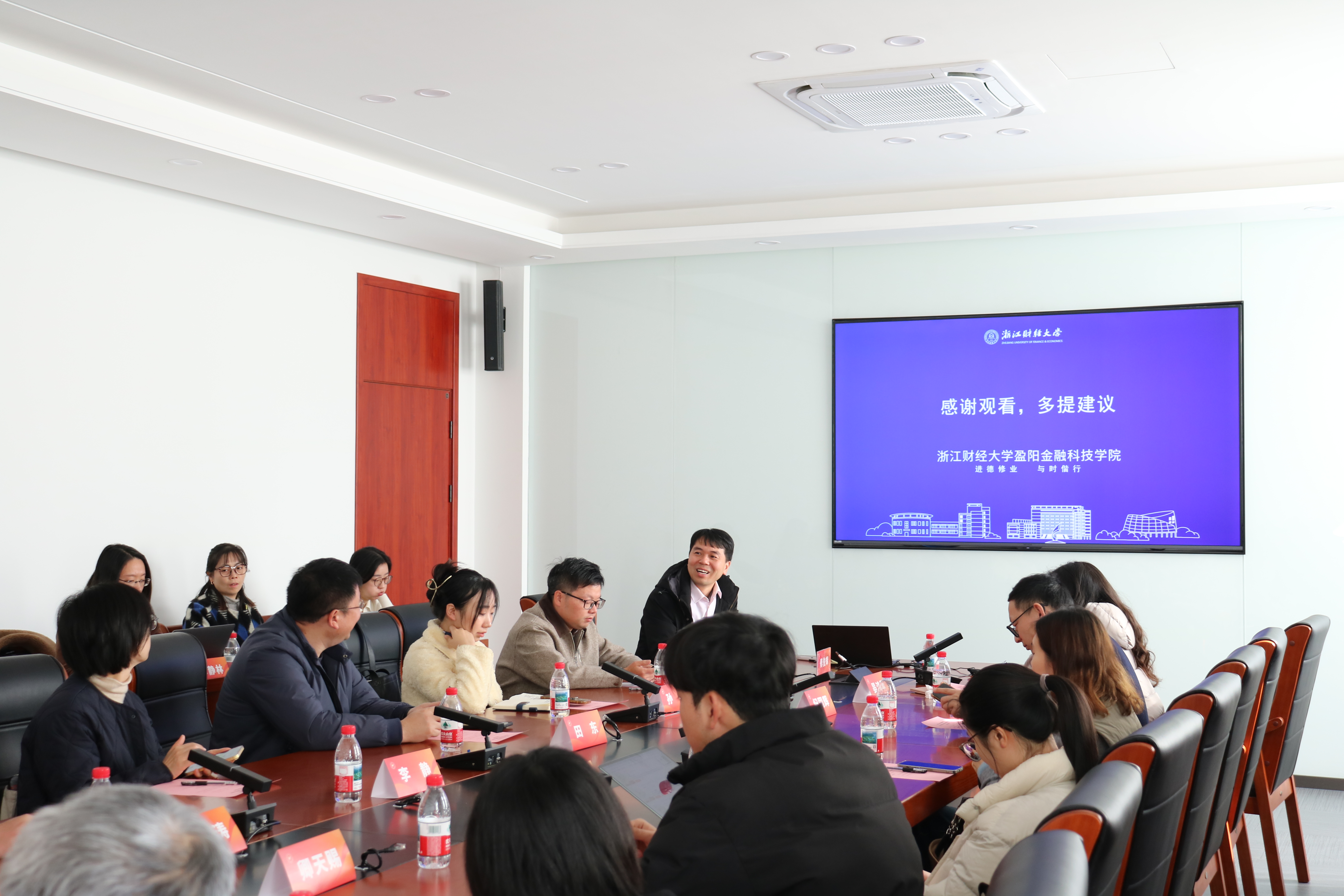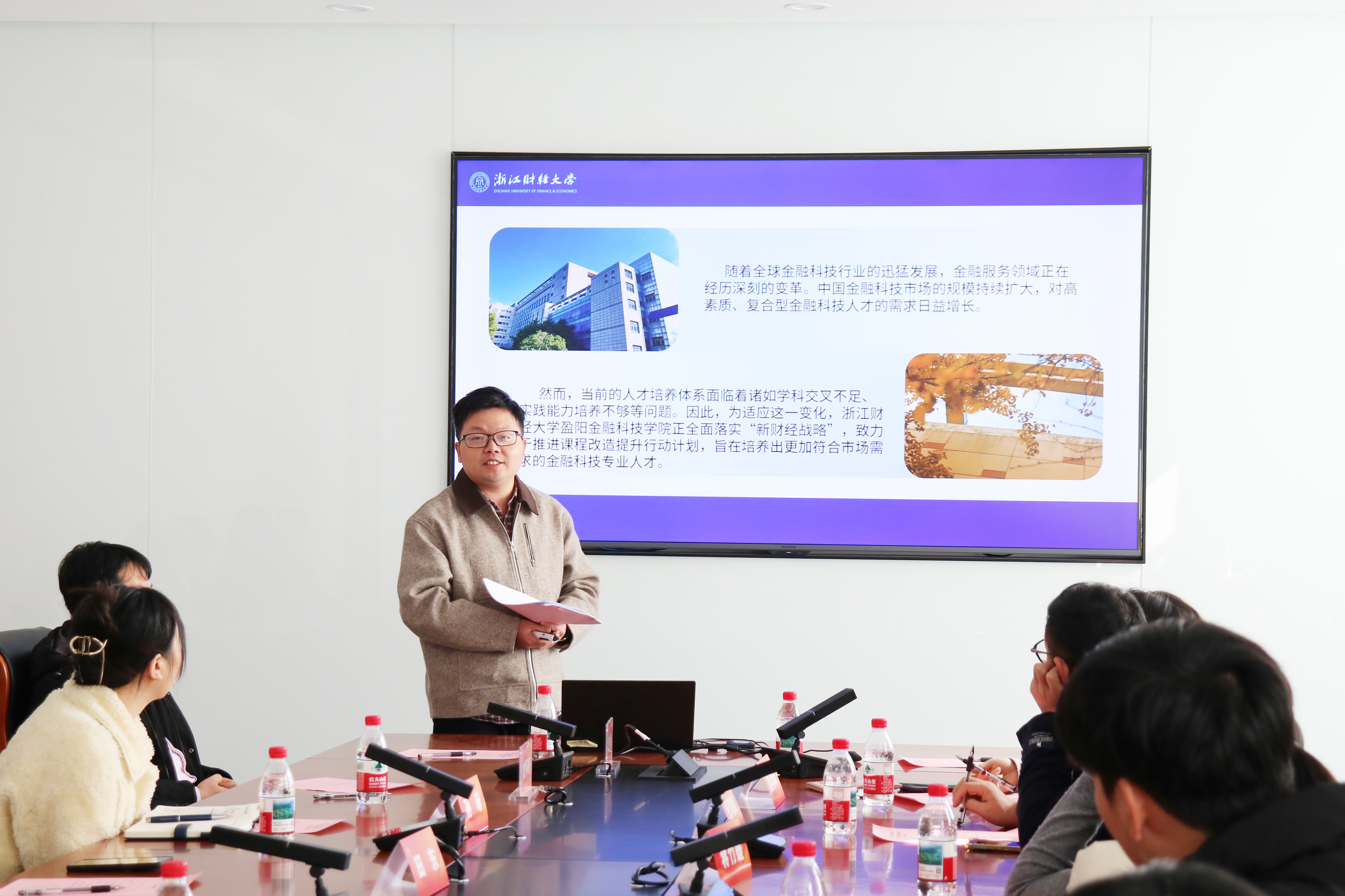 傅俊辉首先代表学院对浙江工商大学泰隆金融学院与重庆财经学院金融学院一行的来访表示热烈欢迎,并对学院建设发展概况进行了详细介绍。他表示,作为浙江省内首家金融科技学院,学院整合了多个院所的师资优势,具有完整的本硕博多层次人才培养体系,重点布局金融工程、金融科技两大核心专业。他指出,学院以“K+MAQ型”理念,构建学科交叉培养方案与师资队伍,推行产教融合教学体系,强化实践教学,推进人才培养。