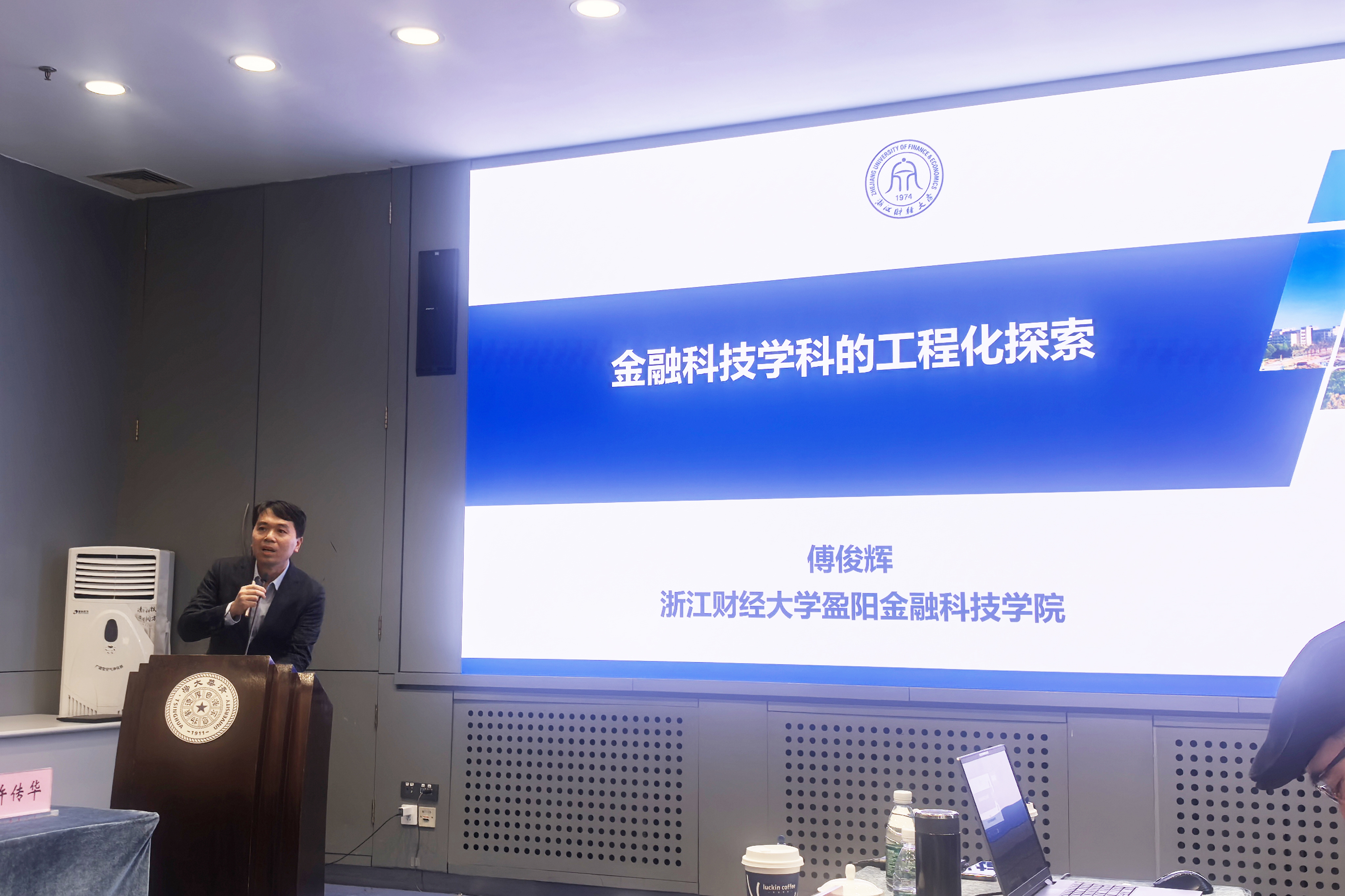 浙江财经大学盈阳金融科技学院副院长傅俊辉应邀参会,并在12月13日于清华大学主楼举办的院长论坛分论坛二“数字经济学科建设”中,以“金融科技学科的工程化探索”为题作专题报告。