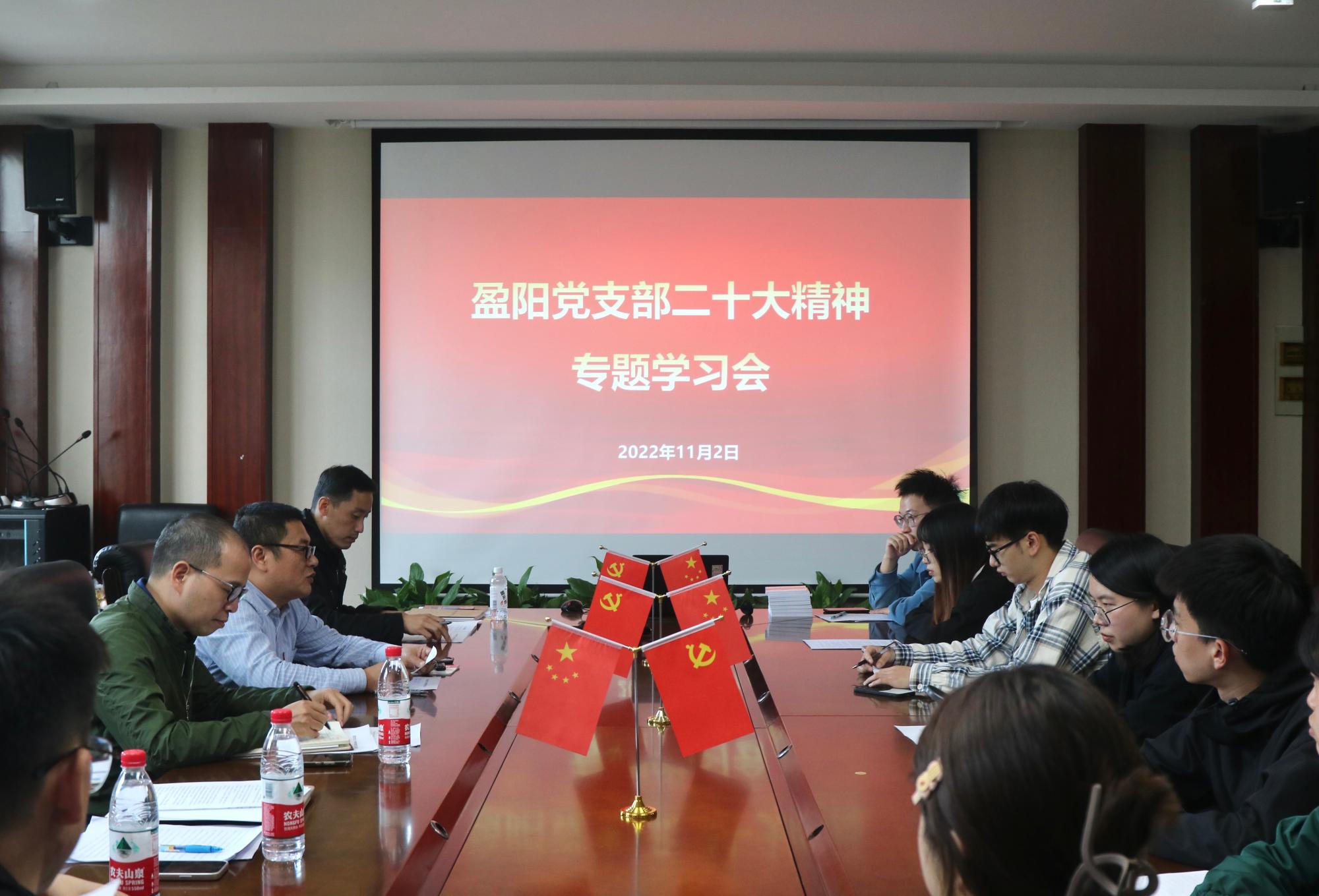 盈阳党支部书记方成副院长紧跟时事热点讲解党的二十大精神内涵,并给各成员发展提出建议,强调将党的二十大精神贯彻落实到今后的学习工作中。支部成员们也对今后的党支部活动等工作展开互动交流。