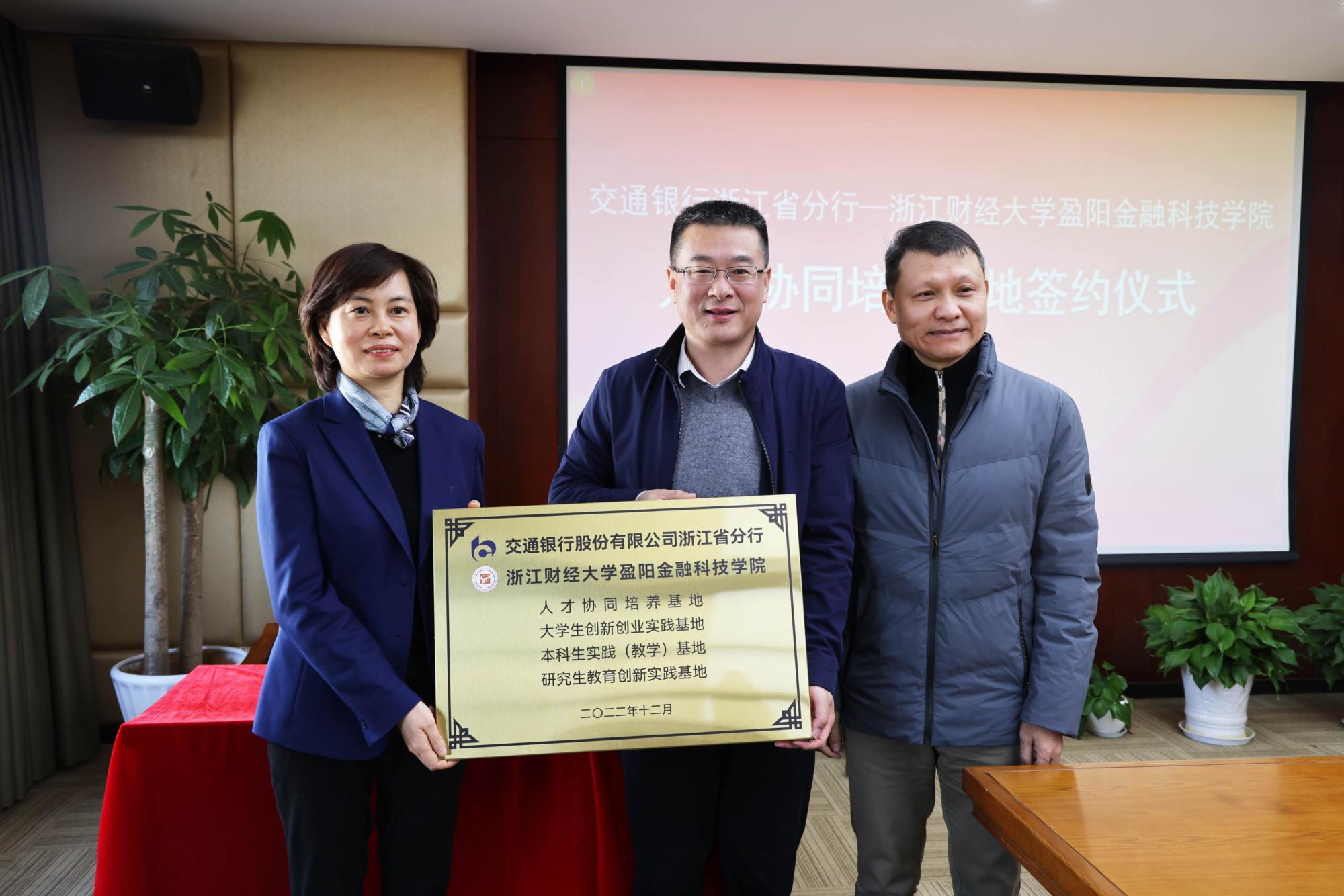 月,交通银行股份有限公司浙江省分行与盈阳金融科技学院签订人才协同培养战略合作协议书。